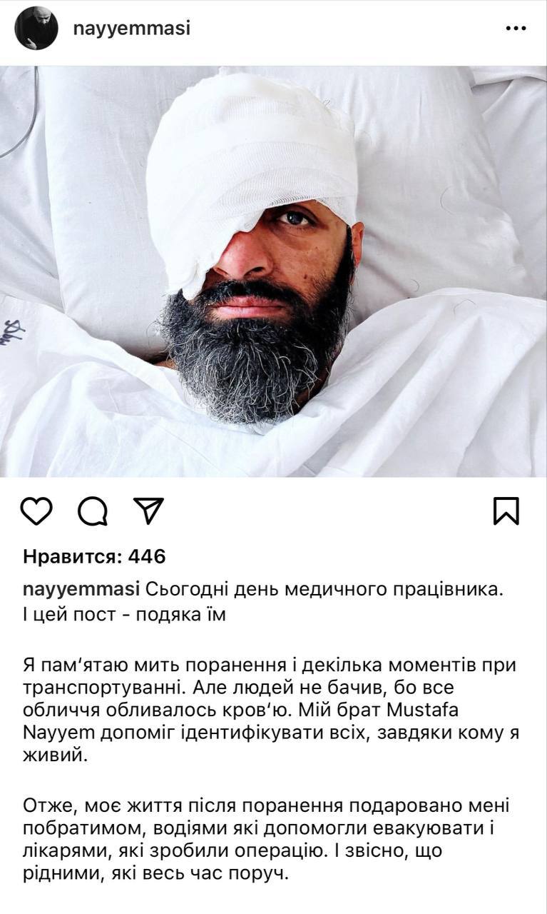 17.31 Маси Найем опубликовал своё первое фото после ранения в голову, полученного на Донбассе.