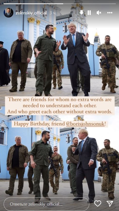 21.00 Зеленский в инстаграме "без лишних слов" поздравил Бориса Джонсона с днем рождения.
