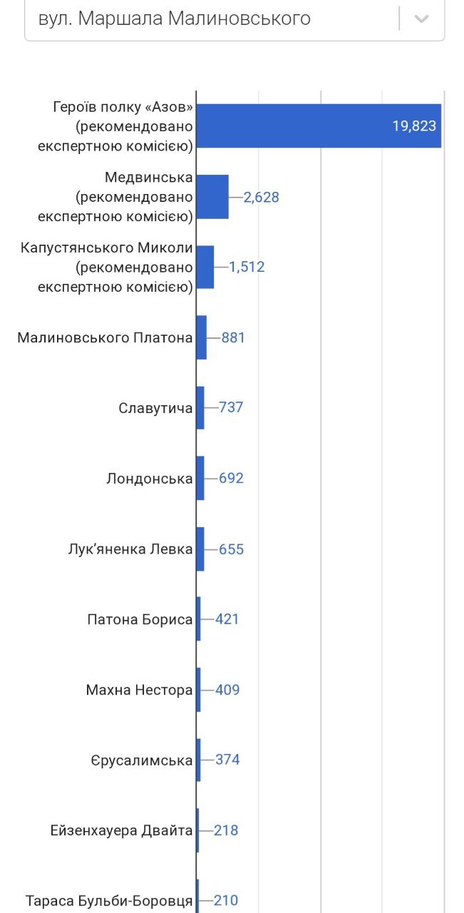 Улица Маршала Малиновского на Оболони - станет улицей Героев полка "Азов", как и рекомендовала комиссия экспертов. Мэрия уже подтвердила, что поставит это название на голосование.