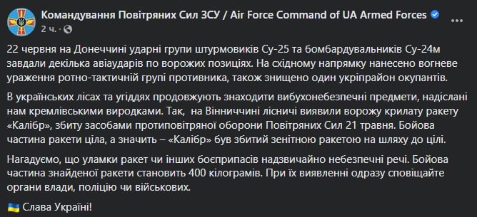 10:09 Командование воздушных сил ВСУ сообщает, что вчера украинские штурмовики били по позициям противника в Донецкой области.