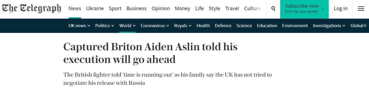 08:38 Адвокат "осужденных" в Донецке к расстрелу британцев и марокканца, воевавших за ВСУ, заявила о подаче апелляции, а если ее не удовлетворят - то прошения о "помиловании".