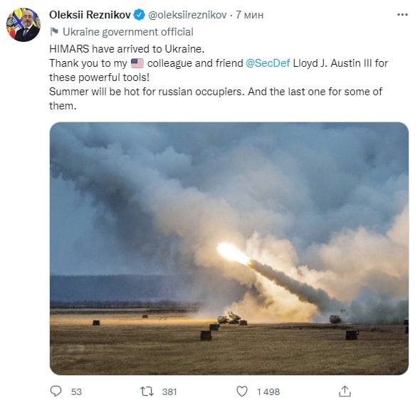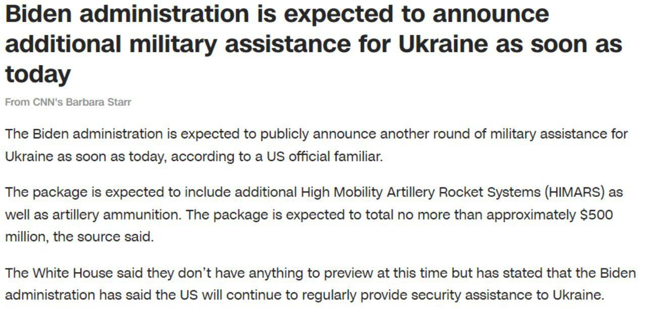 Ранее ожидалось, что Белый дом объявит о новом пакете помощи, который включает РСЗО HIMARS.