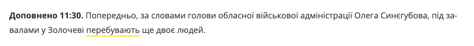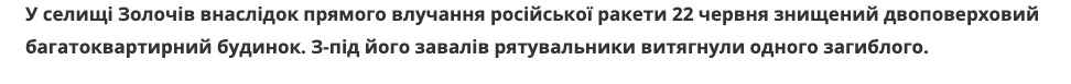 Под завалами многоэтажки в Золочеве Харьковской области, разрушенной сегодня российской ракетой, нашли тела трех человек.