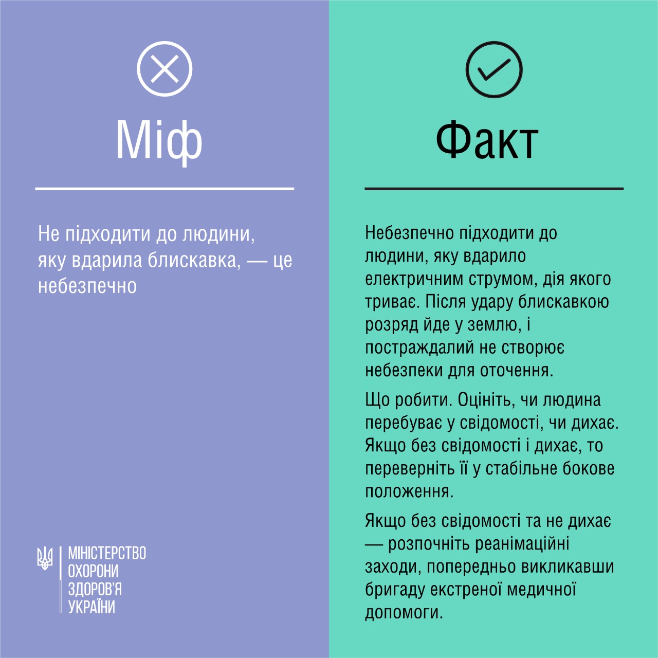 Министерство здравоохранения Украины продолжает развенчивать мифы о домедицинской помощи и публикует инфографику с основными ошибками, которые люди допускают при оказании помощи человеку, который потерял сознание, захлебнулся в воде или пострадал от удара молнии.