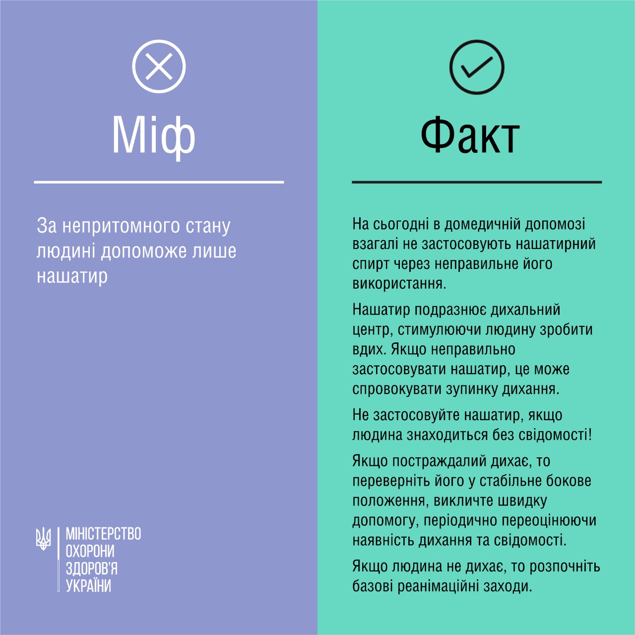 Правда: На сегодняшний день в домедицинской помощи вообще не применяют нашатырный спирт из-за неправильного его использования.