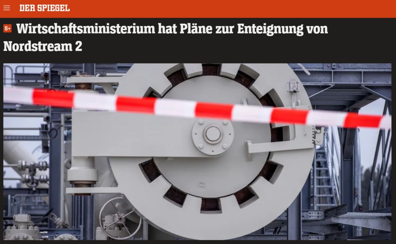 Как сообщают источники Spiegel, в Минфине Германии решили национализировать часть "Северного потока - 2", проходящего по территории страны. Отрезанный участок трубы могут использовать для соединения восточной и южной Германии с мобильным терминалом СПГ в Балтийском море.