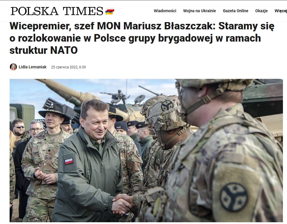 Министр обороны Польши Мариуш Блащак говорит, что группировку НАТО в стране нужно нарастить до численности бригады (порядка 8 тысяч человек - Ред.).