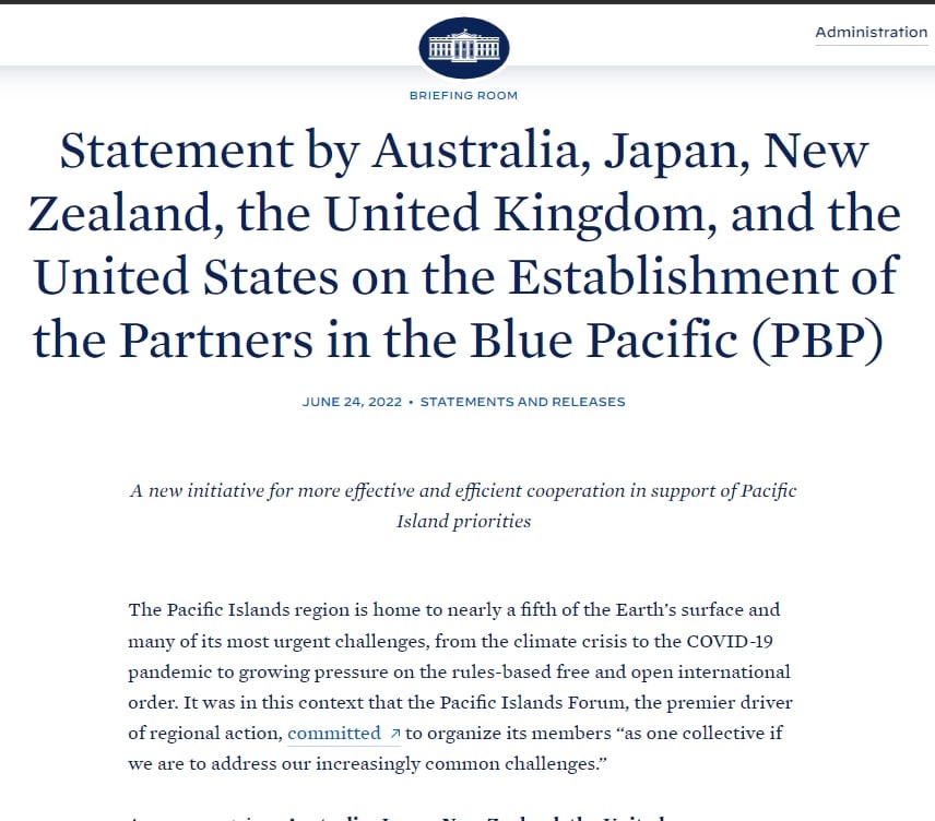 Он называется "Партнеры в голубом Тихом океане" (Partners in the Blue Pacific или PBP).