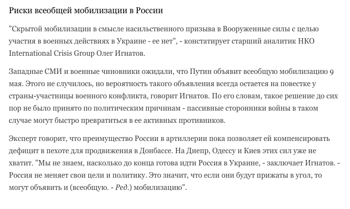 Противоречивая информация о мобилизации РФ появляется чуть ли не с первых дней войны. На днях Bloomberg опубликовал материал, что Кремль может быть вынужден объявить в РФ массовую мобилизацию.