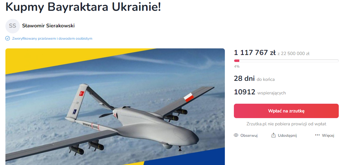 В Польше собрали первый миллион злотых для покупки "Байрактара" Украине