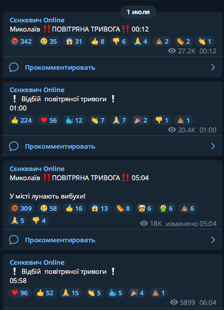 05:58 Сначала в полночь, а потом в 05:04 в Николаеве раздалась воздушная тревога. В городе были слышны взрывы.