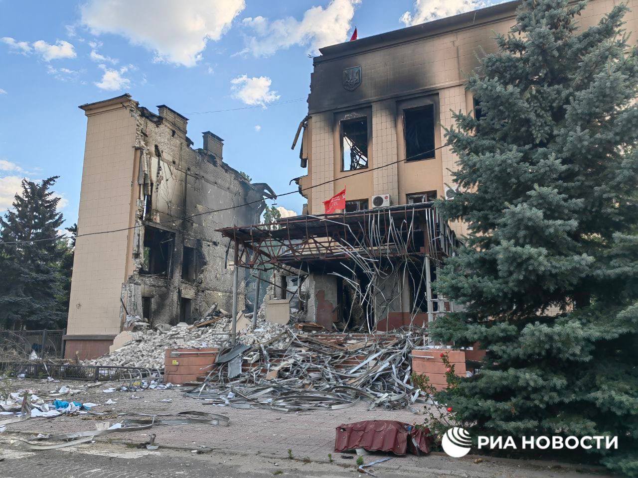 21.50 Российские СМИ публикуют фото из Лисичанска, который, по утверждению Минобороны РФ, уже полностью под контролем России и "ЛНР".