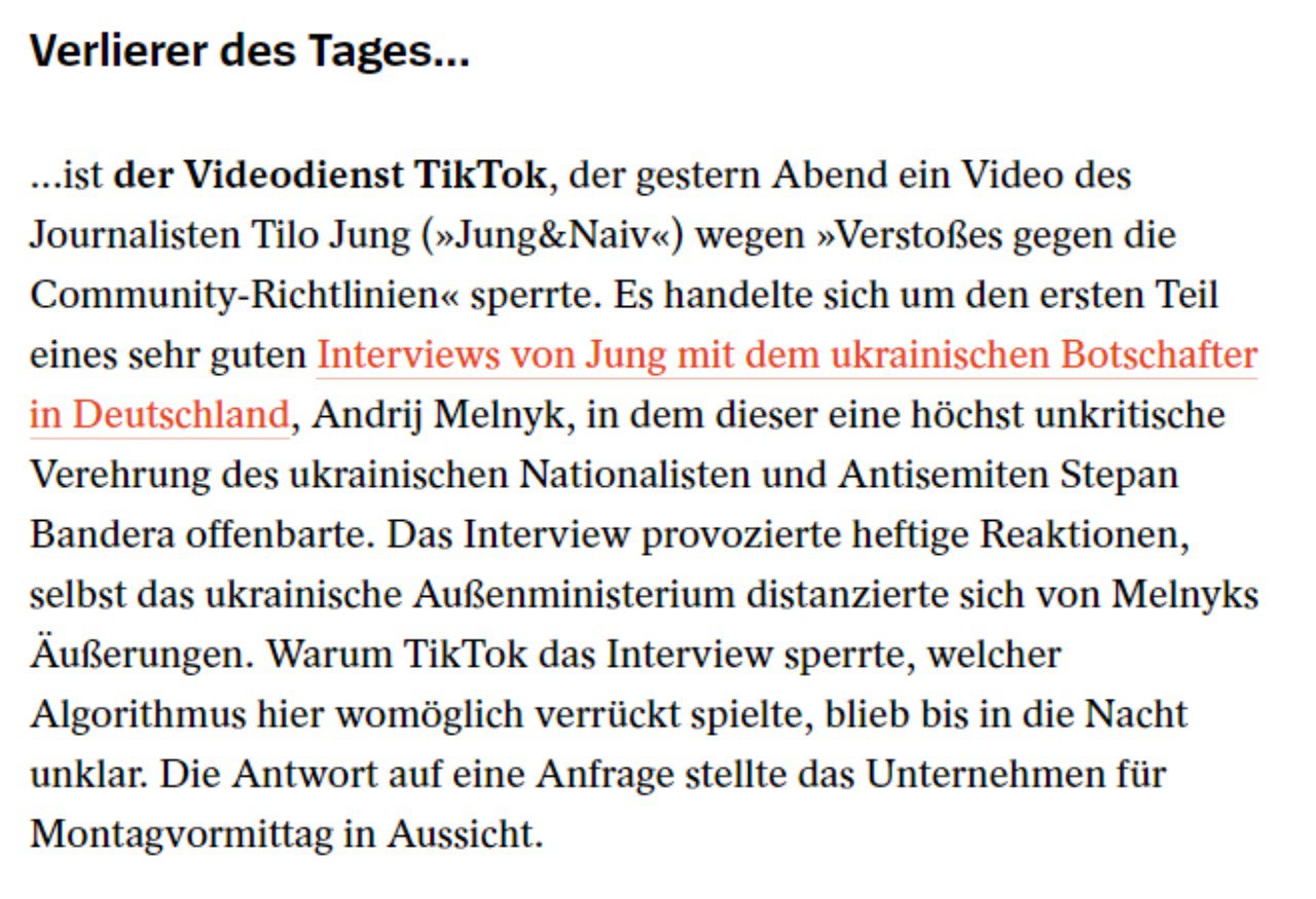 Призывая Киев отмежеваться от заявлений посла в поддержку лидера украинских националистов Степана Бандеры, Феликс Кляйн призвал Украину присоединиться к Международному альянсу памяти жертв Холокоста (IHRA), сообщает Der Spiegel.