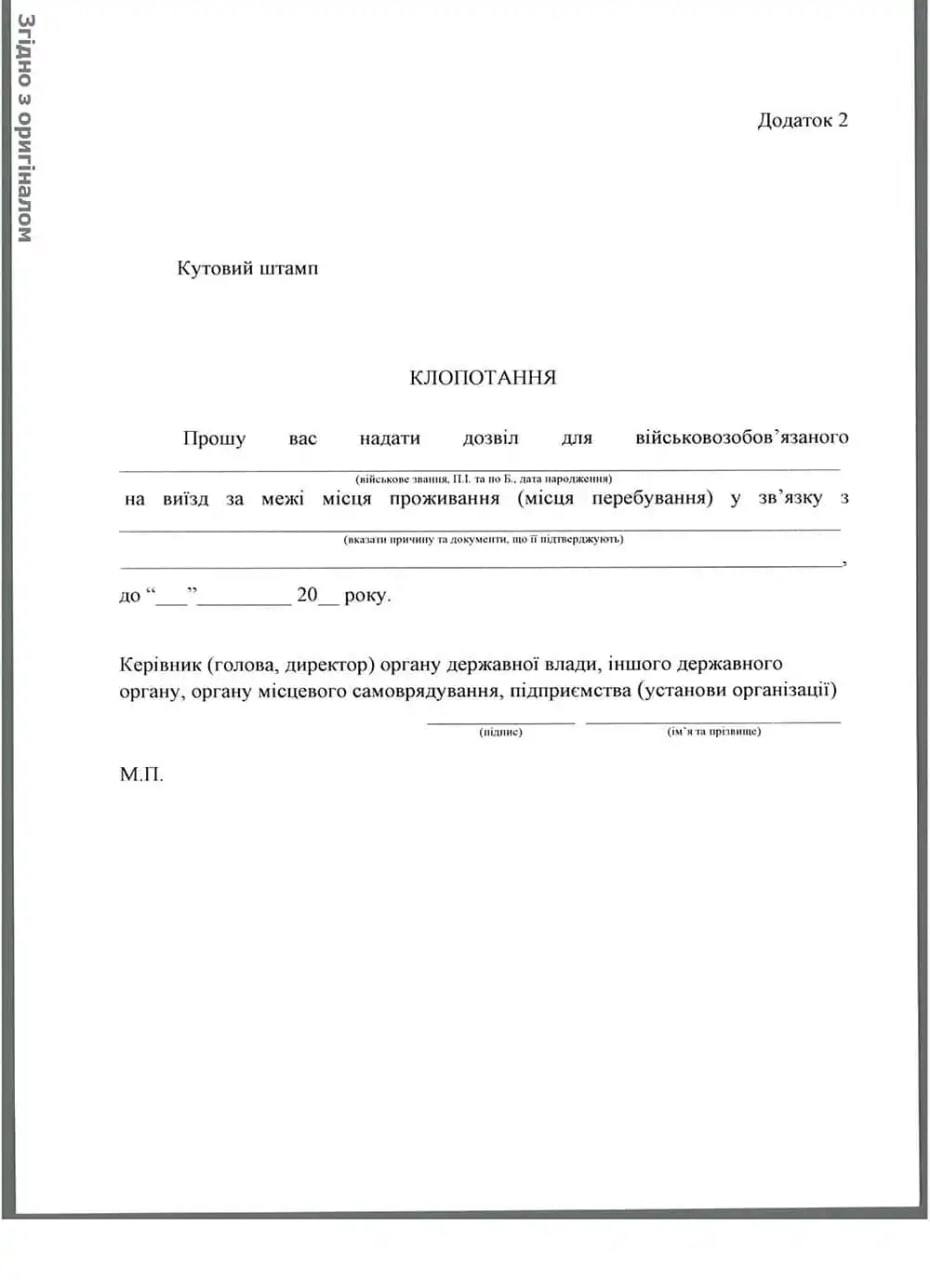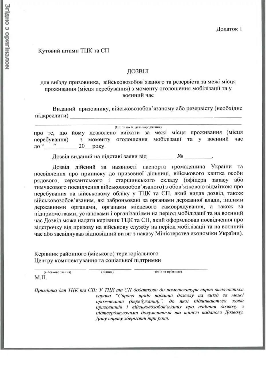 Также Залужный опубликовал бланки заявлений на разрешение на выезд.