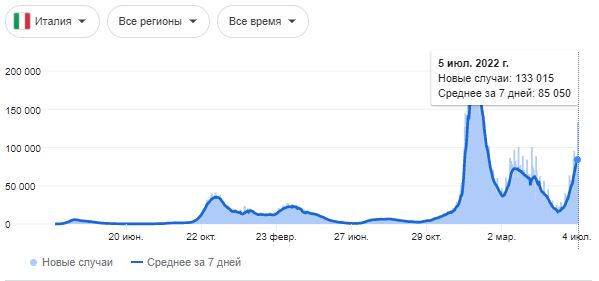 В Италии на этой неделе впервые с февраля этого года количество заболевших превысило 100 тысяч за сутки. При этом о карантинных ограничениях речь пока не идет.