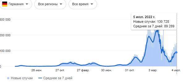 Новую волну пандемии ожидают в Германии, где на этой неделе зарегистрировали 130 тысяч новых случаев за сутки.