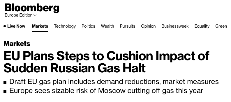 ЕК разработала план действий на случай полной остановки поставок газа из РФ. Bloomberg опубликовал список мер