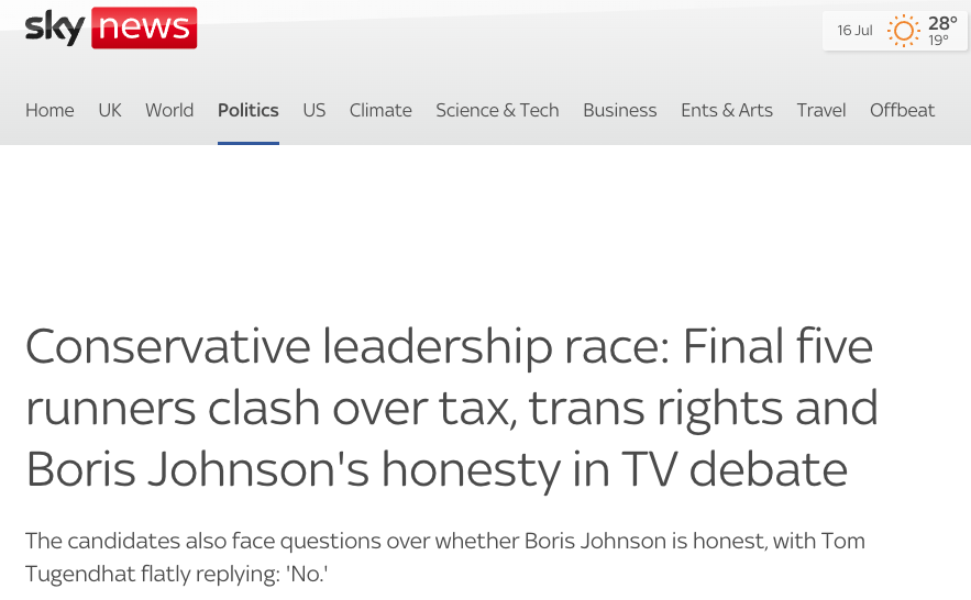 В Великобритании прошли первые теледебаты кандидатов в премьер-министры страны. Фото: Sky News