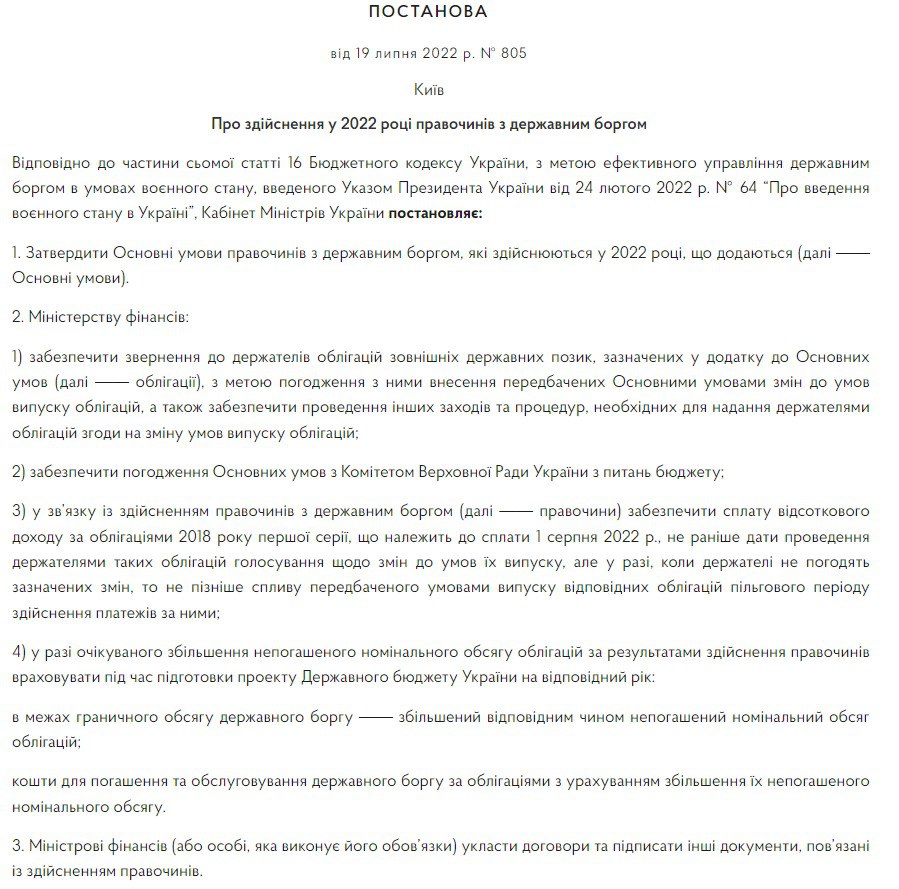 Ранее международные кредиторы согласились на 1,5 года отсрочить выплаты Украины по еврооблигациям - с 1 августа 2022 года до конца 2023 года, с возможностью продления на год.