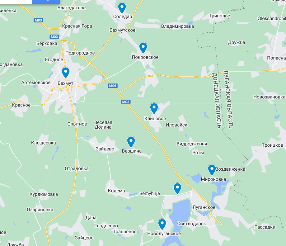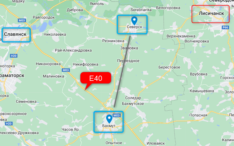 Институт предполагает, что наступление на эту линию "принесет незначительные территориальные завоевания". Целью которых россияне видят выход на трассу Е40, которая связывает Бахмут и Славянск.