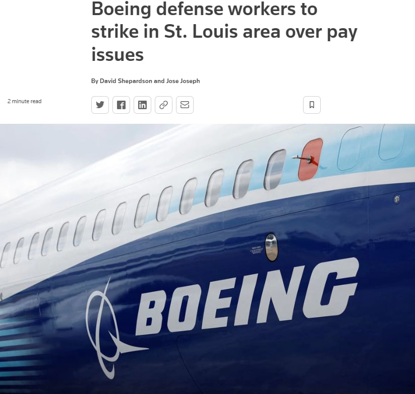08:22 Рабочие трех заводов компании Boeing в Миссури и Иллинойсе уходят на забастовку с 1 августа. На этих предприятиях строят военные самолеты и беспилотники.