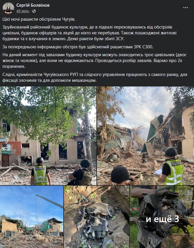Ночной удар пришелся по гражданским объектам Чугуева - школа, дом культуры.