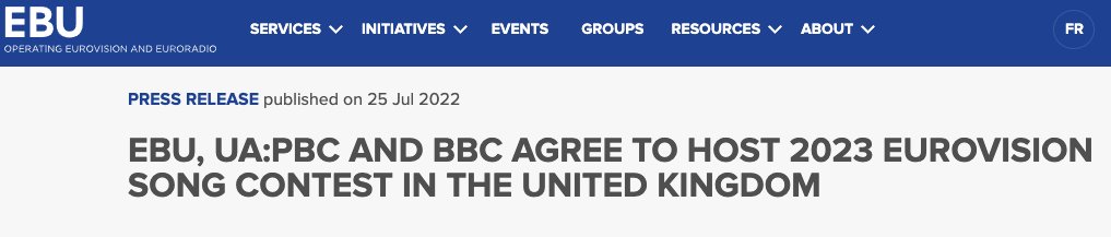 Организаторы выражают свое сожаление, что конкурс будет перенесен "по соображениям безопасности". Принимающей стороной будет ВВС, которая заняла второе место в конкурсе 2022 года. Они будут работать вместе с украинской стороной над организацией шоу.