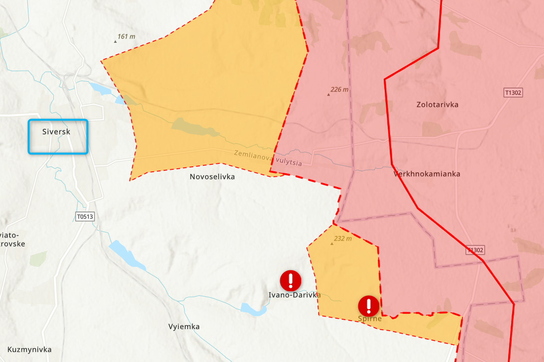 Под Северском идут попытки россиян захватить Ивано-Дарьевку. Ее атакуют с двух сторон - от Верхнекаменки и Берестового (то есть с востока и юга).
