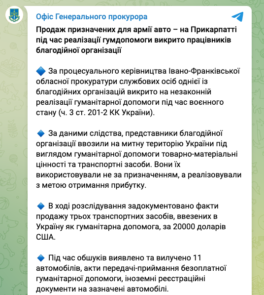 В Ивано-Франковской области разоблачили "благотварительную" организацию, сотрудники которой завозили в Украину автомобили под видом гумпомощи для ВСУ, а на деле просто продавали их людям.