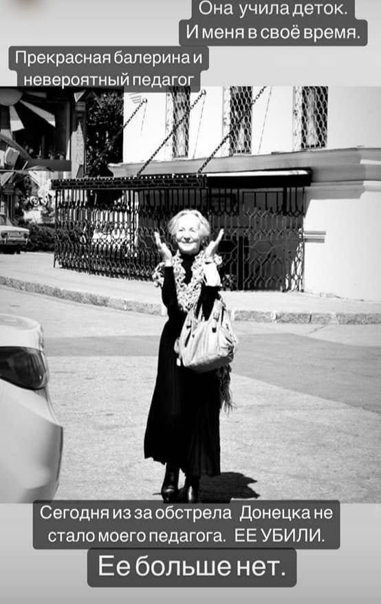 07:52 При обстреле Донецка вчера погибла преподаватель хореографии из театра оперы и балета Галина Володина. А также ее внучка, которая занималась балетом.