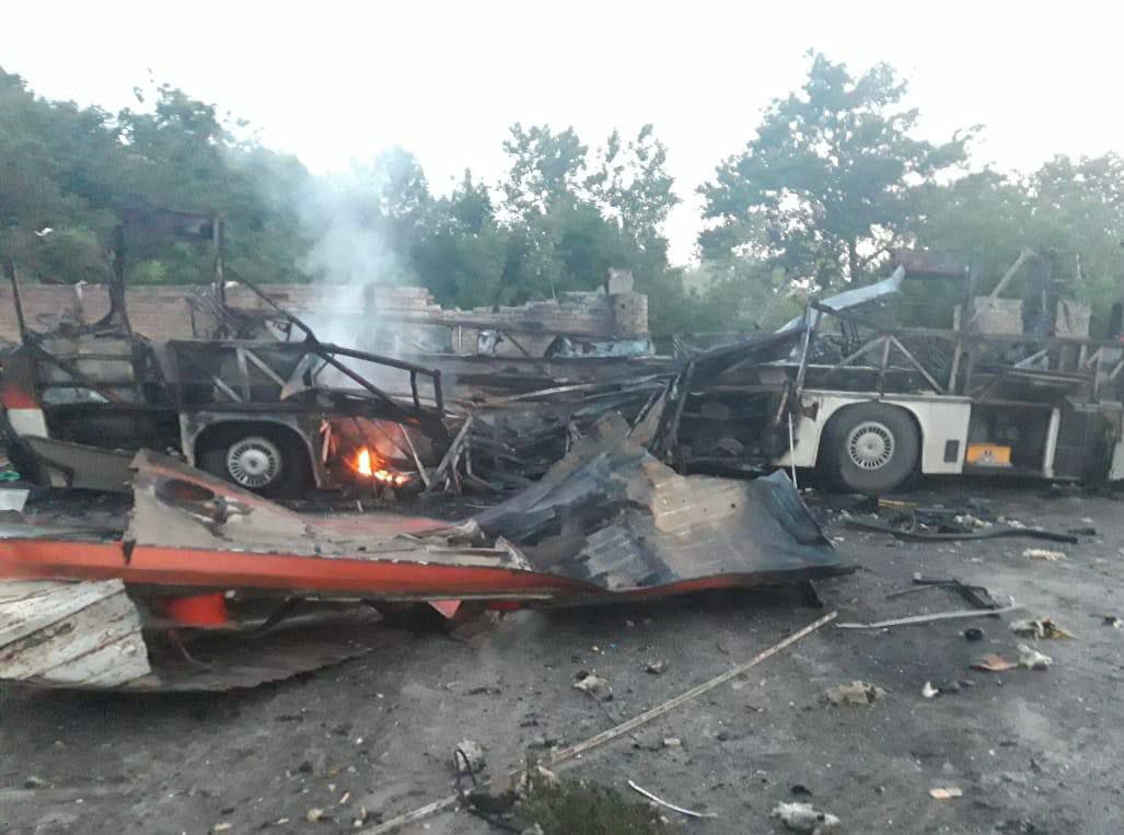 07:55 Во время ночного прилета по Никополю сгорел автобус. Фото публикует губернатор Валентин Резниченко.
