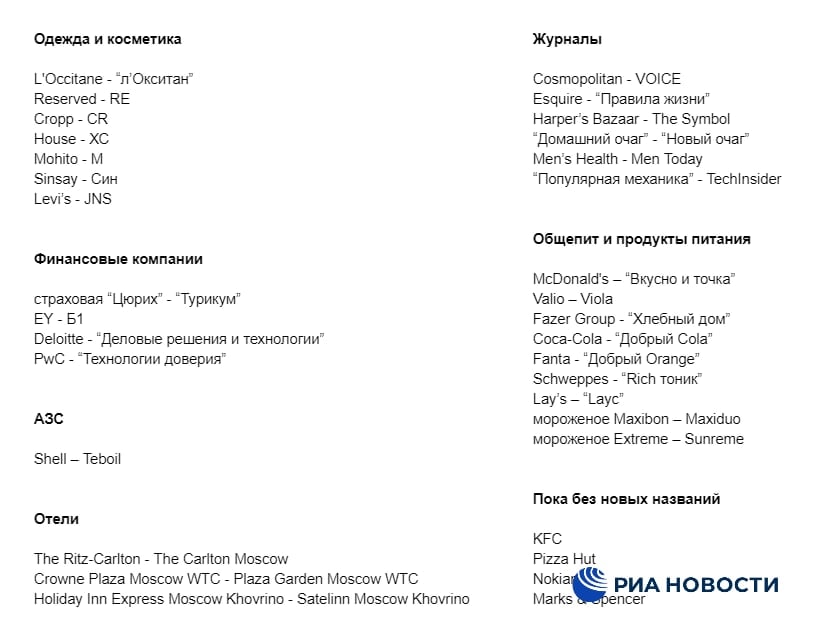 10:48 Уже 30 западных брендов в РФ сменили вывески.
