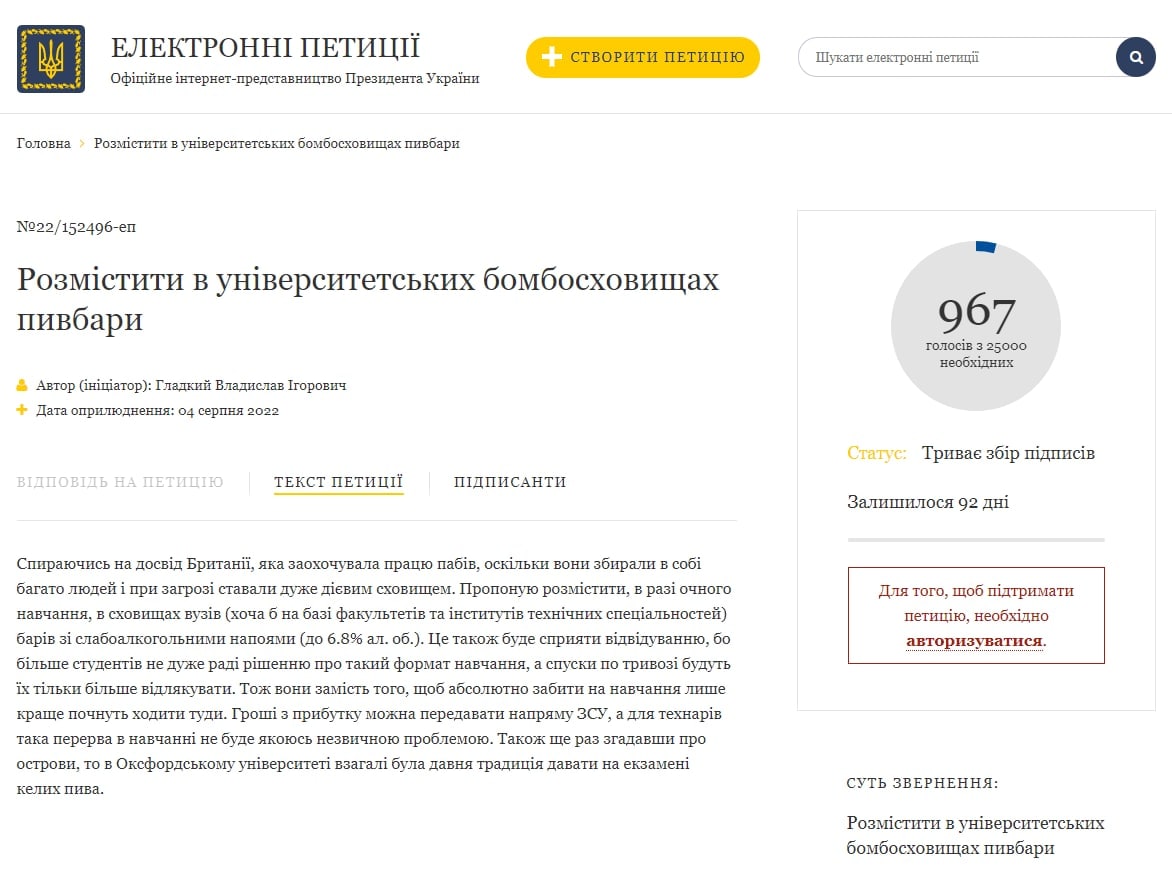 11:55 Зеленского просят разместить в бомбоубежищах университетов пивбары.