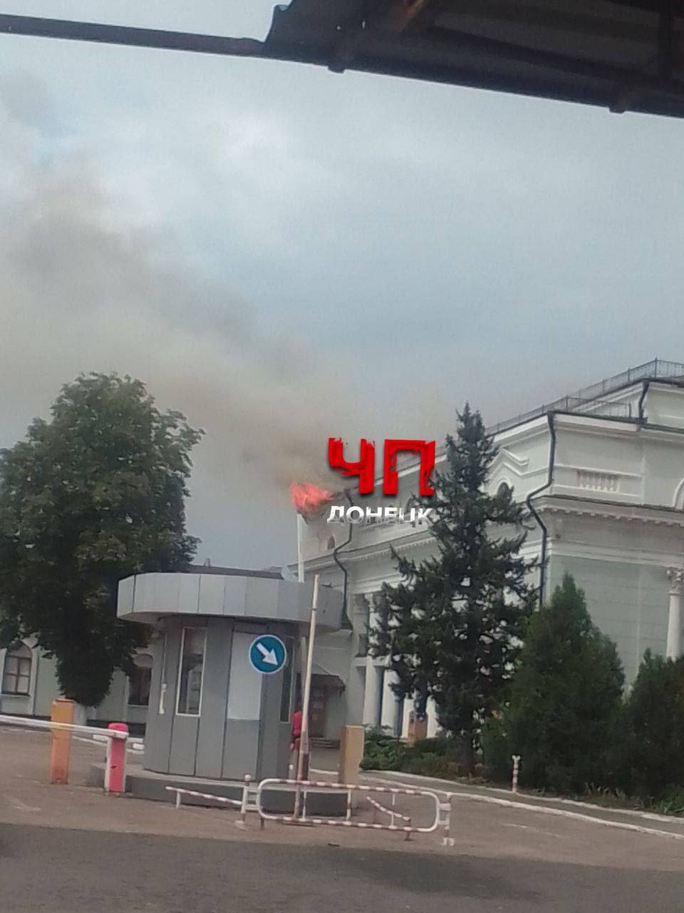 13:48 После обстрела горит железнодорожный вокзал в Донецке.