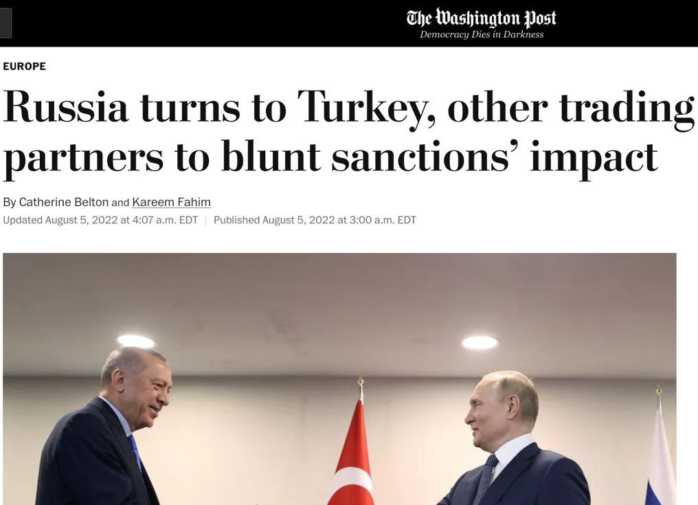 Москва обратилась к Турции за помощью в обходе санкций. Соответствующее предложение российских властей перехватила украинская разведка накануне переговоров президентов РФ и Турции Владимира Путина и Реджепа Эрдогана в Сочи.