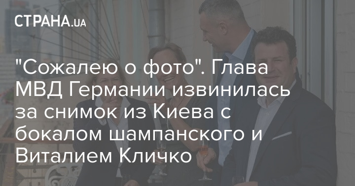 "Сожалею о фото". Глава МВД Германии извинилась за снимок из Киева с бокалом шампанского и Виталием Кличко