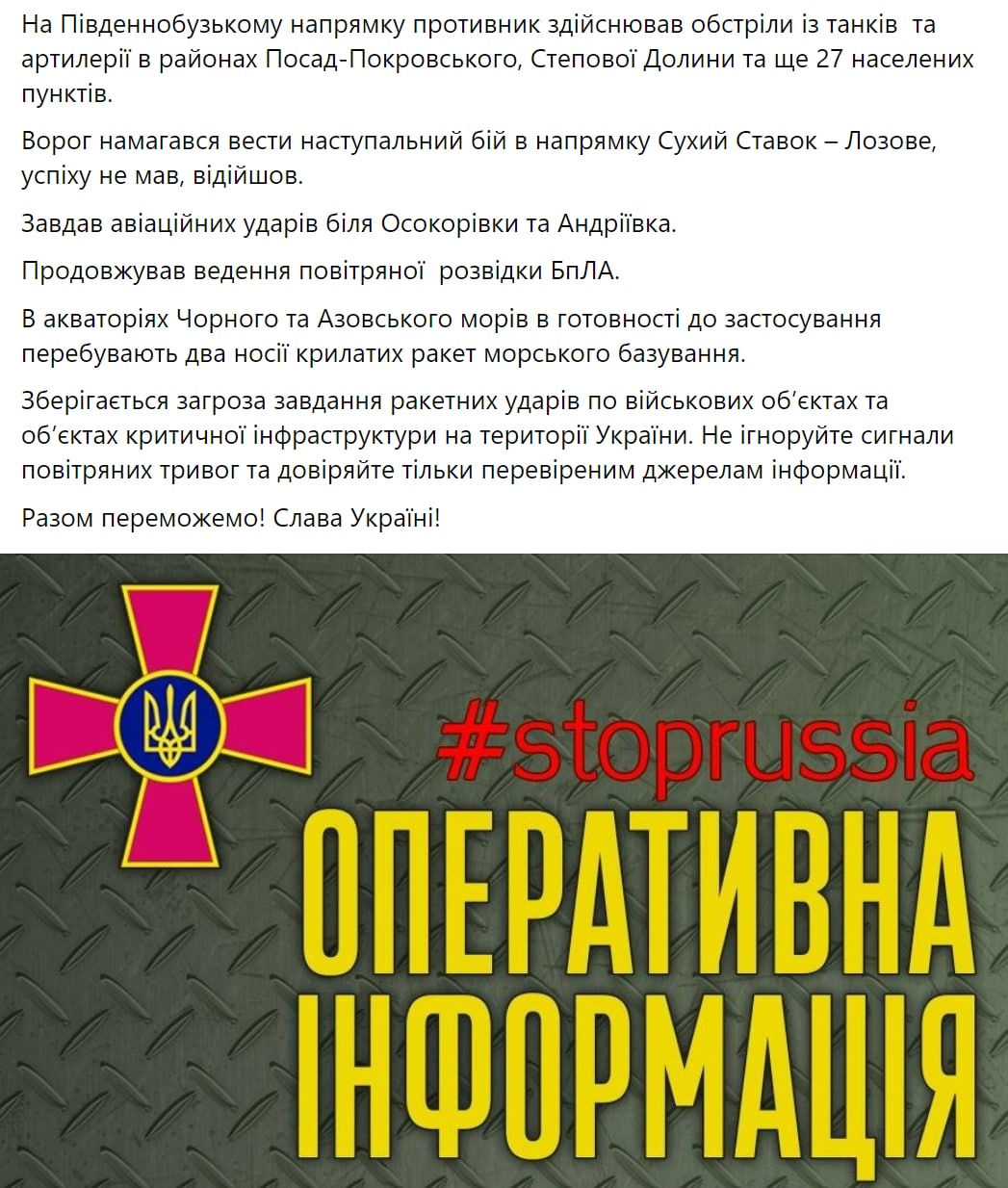 18:32 Появилась вечерняя сводка Генштаба ВСУ.