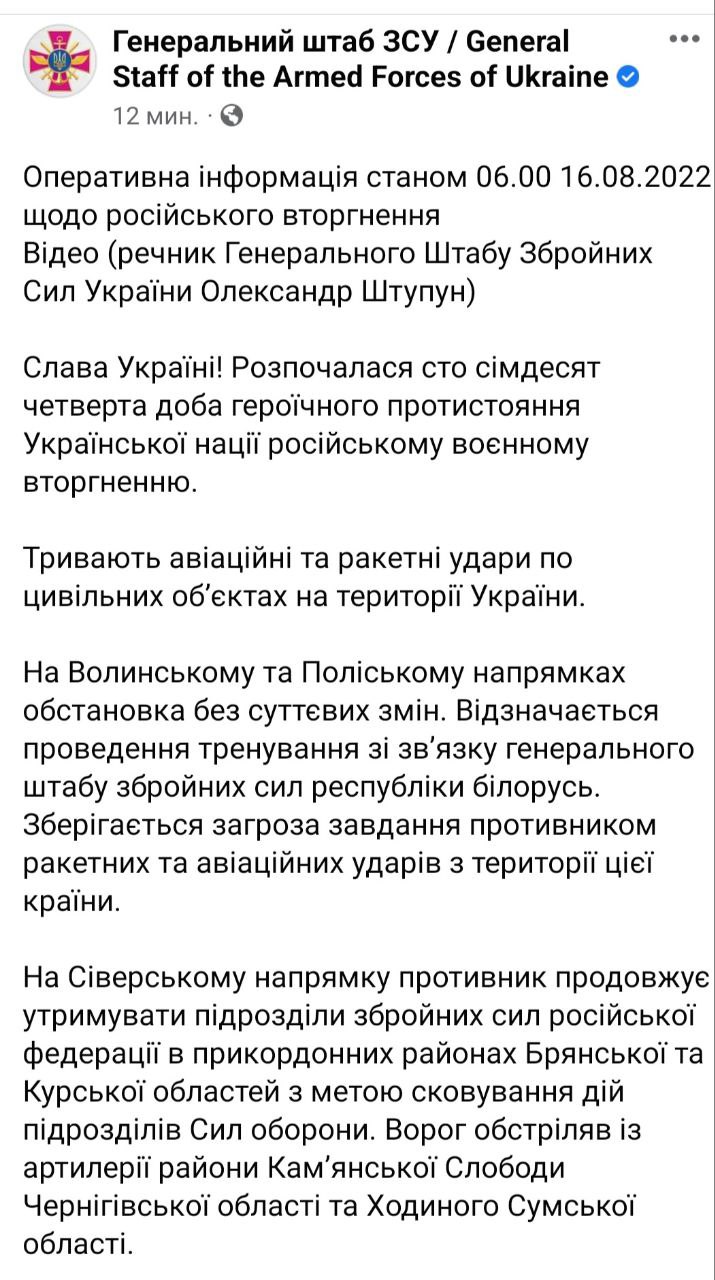 Война в Украине продолжается уже 174-й день. "Страна" следит за происходящим 16 августа в обновляемом материале.