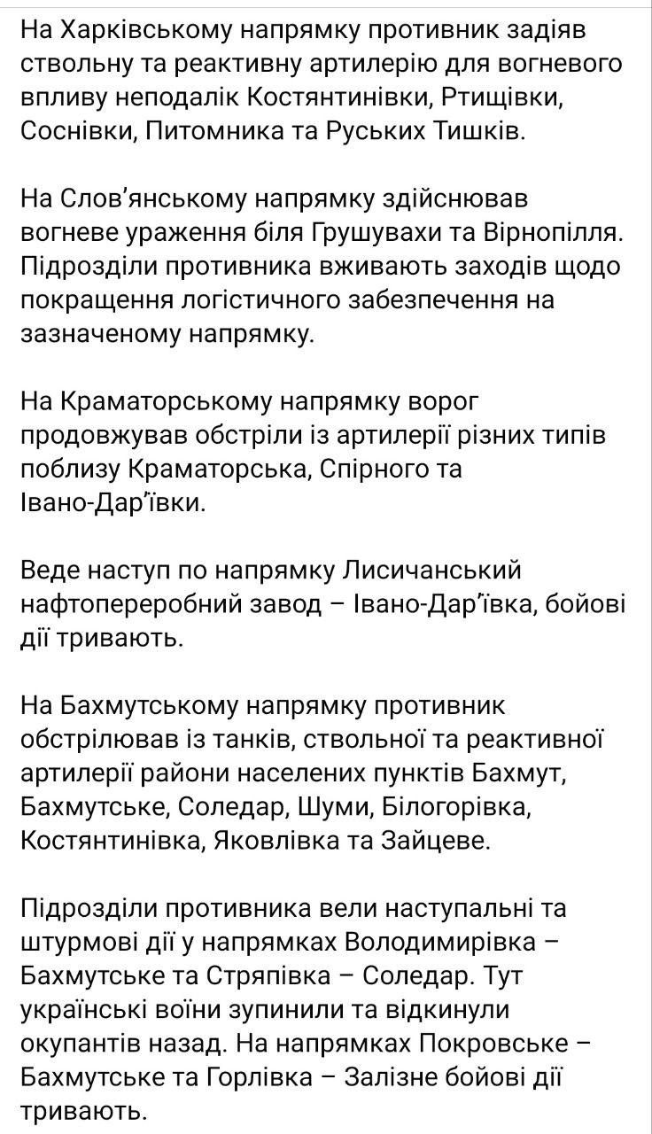 За минувшие сутки РФ имела частичный успех в захвате небольшого села на Донбассе. Сводка Генштаба