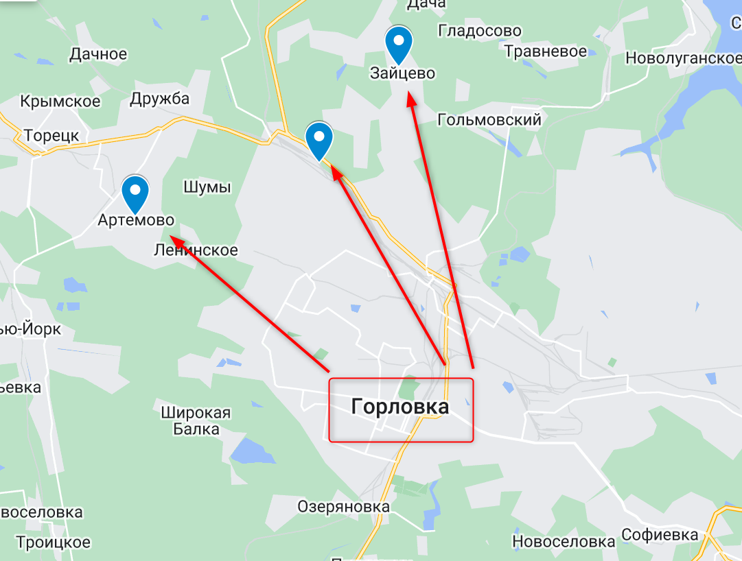 3. Противник атакует Зализное (до декоммунизации - Артемово) на северо-запад от Горловки. Это город, который открывает путь к Торецку и вплотную к нему примыкает.