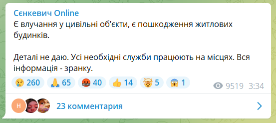 Ночью с 16 на 17 августа россияне обстреляли ракетами Одесскую область и Николаев. В Николаеве есть попадания в гражданские объекты и повреждения жилых домов.