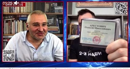 08.30 Арестович показал свое удостоверение внештатного советника Офиса президента.
