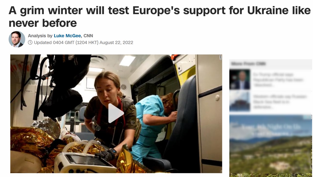 08:09 Официальные лица по всей Европе обеспокоены тем, что консенсус о поддержке Украины может рухнуть. Континент вступает в "суровую зиму роста цен на продовольствие, нехватки энергии для обогрева домов и реальной возможности рецессии", пишет CNN.