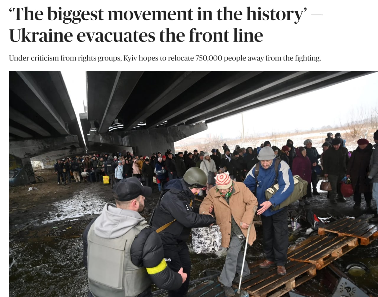 "Некоторые города еще не сильно обстреляны, но тем не менее в них нет ни воды, ни газа. Местные жители подозревают, что коммунальные услуги были отключены, чтобы побудить людей уехать", - пишет издание в своей статье "Крупнейшее переселение в истории Украины".