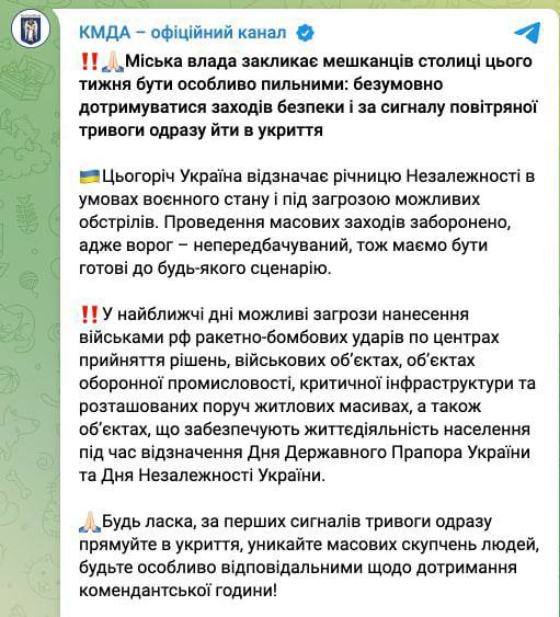 21:55 Перенос начала комендантского часа в Харьковской области на 19.00 с 22 августа связан с информацией об усилении атак России и работой правоохранительных органов для предотвращения провокаций со стороны РФ.