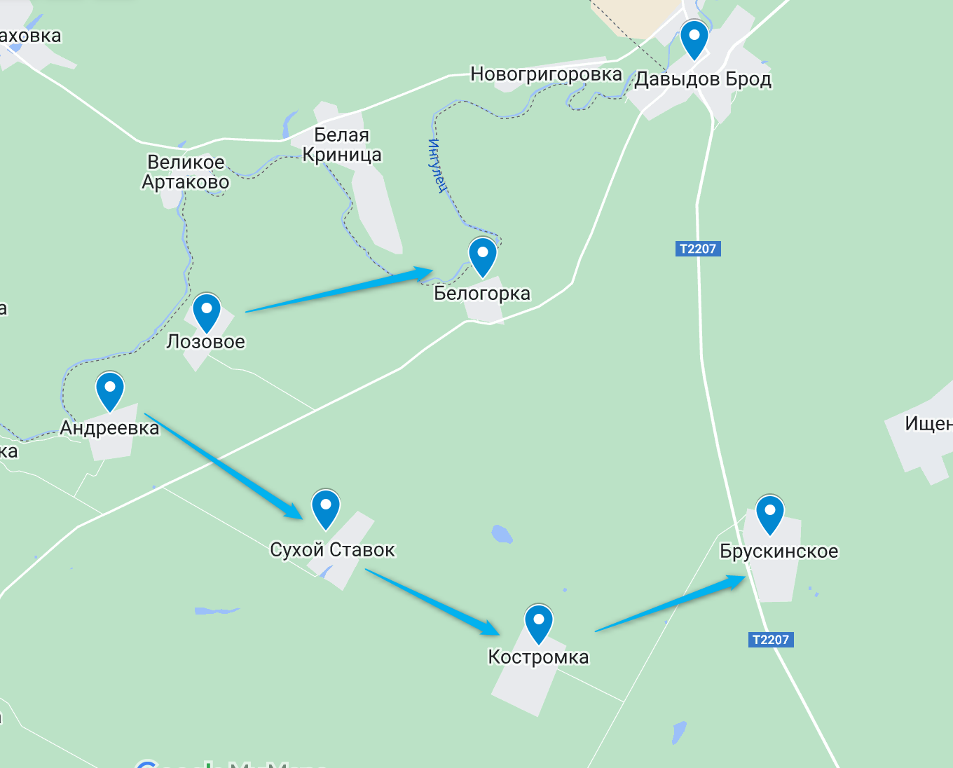 К северо-востоку российские источники говорят о том, что украинские войска стремятся расширить плацдарм вокруг занятых сел Сухой Луг и Костромки, а также взять село Брускинское, через которое идет снабжение российских сил в Давыдовом Броде.