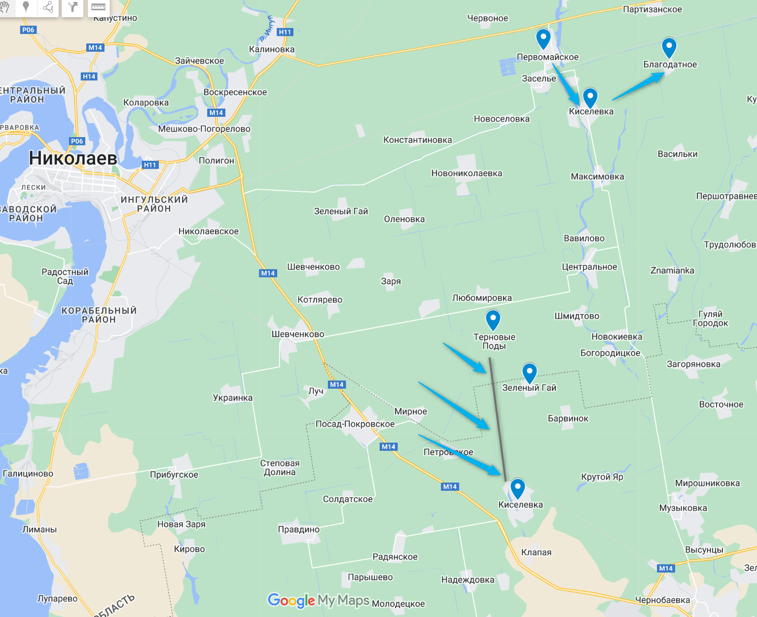 3. Российские военные телеграм-каналы (в частности, Стрелков-Гиркин, который часто критикует военное руководство РФ) писали о том, что в районе Демидова Брода ВСУ продвинуться за вчера не смогли. При этом ВСУ удерживают Андреевку и Лозовое на левом берегу Ингульца.