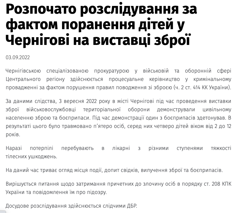 По данным следствия, во время проведения выставки оружия военнослужащие территориальной обороны демонстрировали гражданскому населению оружие и боеприпасы.