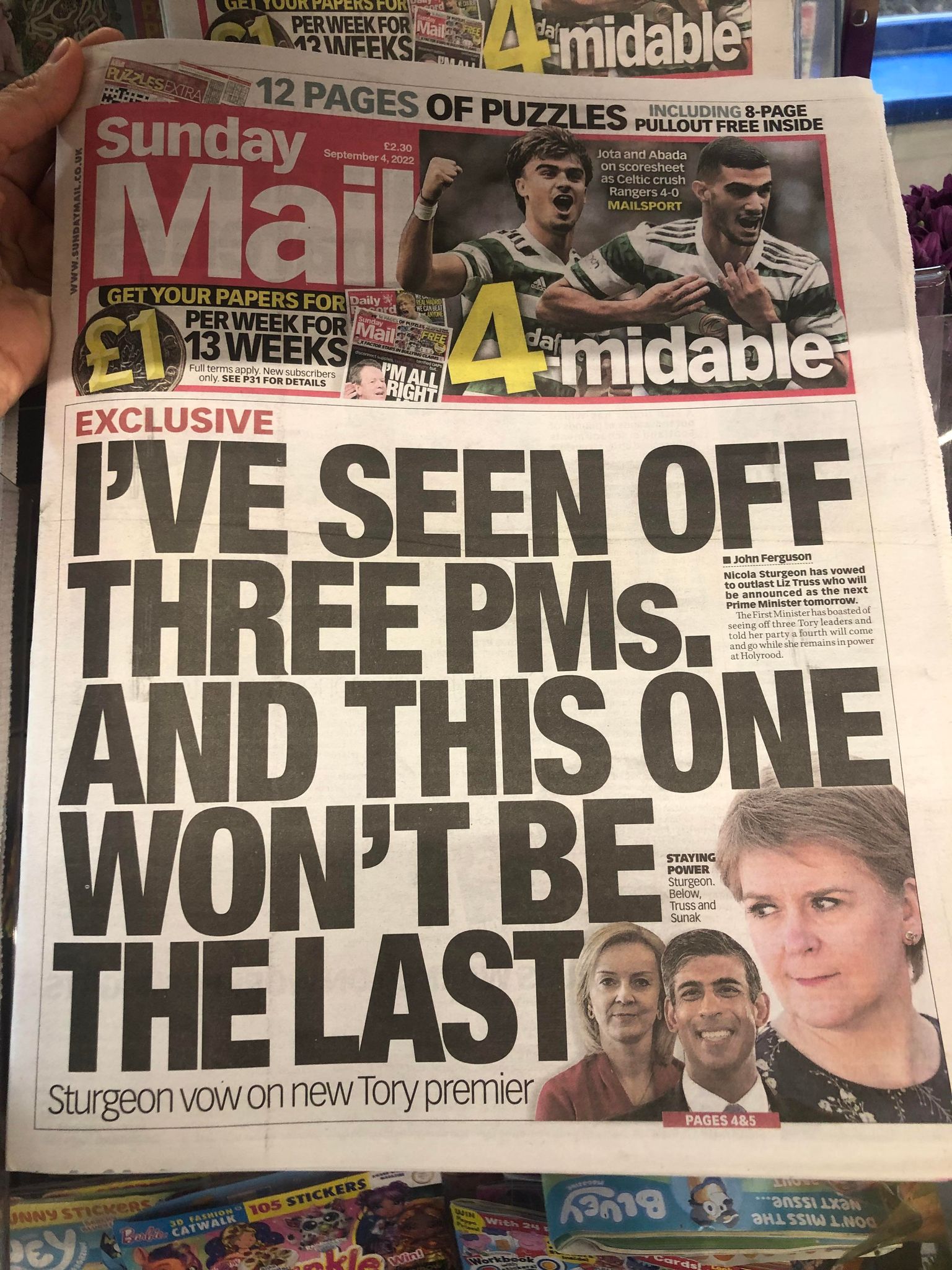 "Я провожала трех премьер-министров, и этот не будет последним", - прочила Стерджен в интервью Sunday Mail.