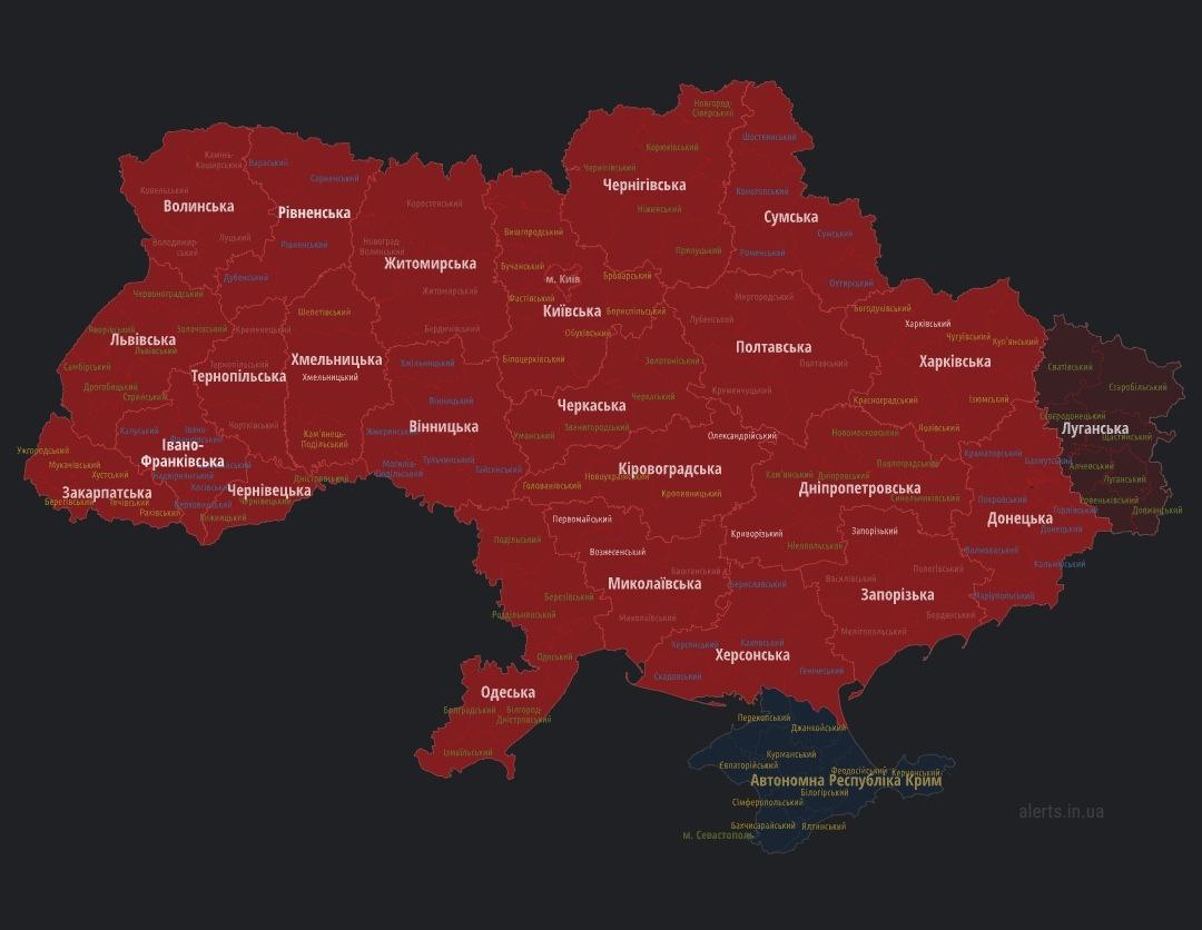 07.50 Воздушная тревога уже по всей Украине (кроме Крыма).